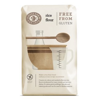Doves Farm - Rijstmeel. Half volkoren rijstmeel, geschikt voor vele doeleinden, zoals bijvoorbeeld het bakken van glutenvrije cake.