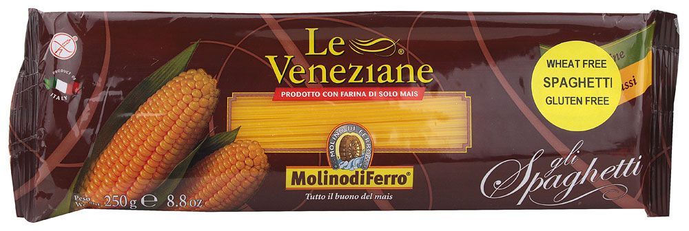 Le Veneziane - Spaghetti. Deze glutenvrije pasta is gemaakt van 100% maismeel. Een heerlijke basis voor een pastamaaltijd.